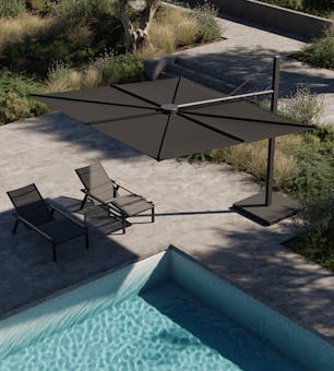 Conçu par Dirk Wynants et mis au point par Kris Van Puyvelde, le parasol Solaz conjugue avec élégance innovation et simplicité d'utilisation. Ce parasol déporté haut de gamme dispense une ombre généreuse, s'imposant comme un élément clé de tout espace extérieur de prestige. La singularité du Solaz réside dans son système d'ouverture évoquant une aile, se déployant avec fluidité pour offrir une vaste zone d'ombrage. Son inclinaison, son pivotement et sa rotation complète permettent une adaptation précise à la course du soleil, garantissant un confort optimal tout au long de la journée. Malgré sa taille, sa manipulation reste aisée, assurant ainsi une protection solaire à la fois pratique et raffinée.